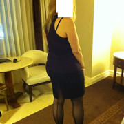 We arrived at the hotel at 4:00 pm, giving my wife about 90 minutes to get ready for her “Date”. She had brought along several dresses, but ultimately decided on a simple black wrap dress that tied at the waist. She paired the dress with pair of black open-toe sandals with a chunky heel, and sheer-to-waist jet black pantyhose with a back seam. As a finishing touch she added her usual sexy ankle bracelet. Instead of a bra she decided to wear a lacey black slip under the dress.