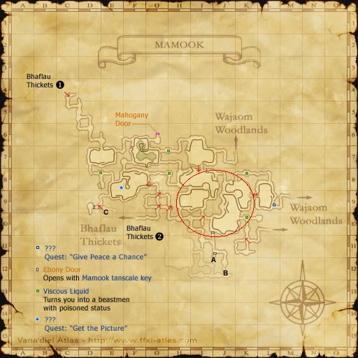 If you do not have CoP access for Lufaise Meadows, you can hunt the spell in Mamook. You can find the Battle Bugards here in the lower parts of the open areas in the zone. They are level 78-79 here, so you will need a solid limit point style party to be able to beat them. There is also a lot of aggro to deal with to get to them, and around them. A very difficult camp. Finish your Promies and hunt in the Meadows!