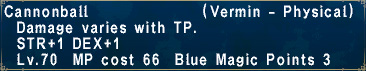 | Minimum Blue Mage Level Needed To Acquire Spell: Level 61 with Magus Jubbah equipped, 64 without. | ||||||||||||||||||||||||||||||||||||||||||||||||||||||