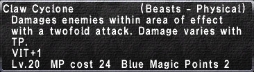 Do you have more information on this spell, or a better/new way to hunt it? Send an e-mail here, with the words: Blue Mage Spells in the subject line. We'll consider your information in the next page update.