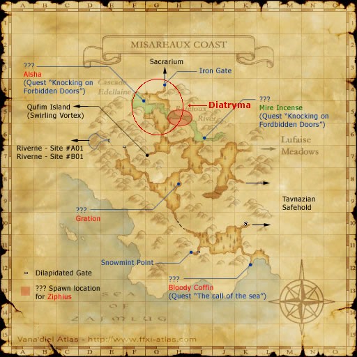 | Do I need any special items? Yes, Eye Drops can help. You also must be at or past the correct CoP missions to hunt in the best camp. Bring sneak and invisible items if needed. As Riverne Site #B01 is capped at 50, be sure to have armor and spells that are under the cap, if you choose to use that camp. A warp item to save a long unsafe walk home is nice also. | |||||||||||||||||||||||||||||||||||||||