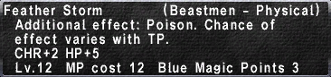 | Minimum Blue Mage Level Needed To Acquire Spell: Level 2 | ||||||||||||||||||