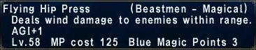 | Flying Hip Press | Fan AoE Wind Damage attack | |