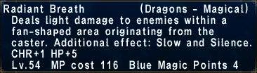 | Radiant Breath | Breath attack Deals light damage + Slow + Silence | |