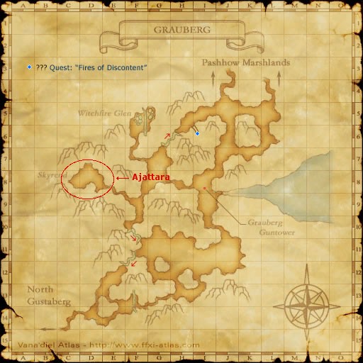 There is a Wyvern camp located in Grauberg [S], located at C-8/D-8 as noted on the map above. The Wyverns here are called Ajattara, and have a very cool Green/Gold skin color, they are also VT-IT to a level 75 player, so they are targets for high level folks. About a dozen of them wander the camp area. To reach camp you may need sneak and Invisible to get past some Quadav and Peiste in the early parts of Grauberg [S] as they can aggro even 75's. You will also need to pass True Sight Hippogryph at the F-8/G-8 area. Take care, but if you are in a group equipped to deal with the Ajattara, any aggro you get will not be a problem! Fights here should be handled as noted in the Camp #2 and #3 notes above.