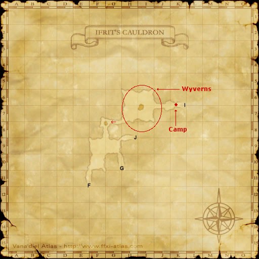 Higher level Wyverns can be found in many places that do not require CoP missions for access. In all cases, due to the high level of the Wyverns, a solid exp or merit style party will be needed to beat them safely. A skilled Red Mage, Beastmaster, or Ninja can solo these high end wyverns with a lot of careful work. So if you have a friend with one of these jobs, who loves a challenge, this might be something for them to try! All these camps are in very dangerous zones. Proper care should be taken.