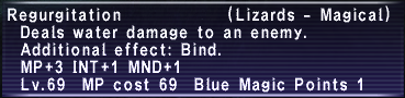 | Minimum Blue Mage Level Needed To Acquire Spell: Level 60 with Magus Jubbah equipped, 63 without. | |||||||||||||||||||||
