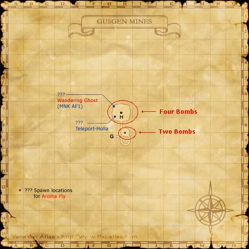 In addition to the specific bombs listed above, bombs can spawn in almost any outside zone when it is foggy. The level will match the average level of other monsters in the zones. The low level bombs are great to learn from, but easy to kill, so you need to let them hit you to build TP. The high level bombs are evil! Hellmines and Volcanic Gas explode for thousands in damage. If you want your spell from one of those sort, have a friendly Beastmaster solo it for you.