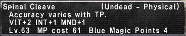 | Spinal Cleave can be paired with any of the following spells to create the Attack Bonus Trait: Battle Dance, Uppercut, Death Scissors, Temporal Shift or Thermal Pulse. | ||||||||||||||||||||||||||||||||||||||||||||||||||||||