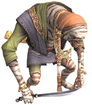 Qutrub take triple damage from melee attacks, and double damage from magical ones, in return they have double the HP of other mobs their level. Spinal Cleave is only used when the Qutrub's first weapon, a sword, is broken, and is it's second weapon, a dagger sheathed on it's back is not. If the second weapon is broken the Qutrub cannot use Spinal Cleave. All of the Qutrub damage TP moves can hurt, but a high level tank should have no problems with them. |