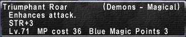 | Triumphant Roar (Only used when not in flight) | Caster receives Attack up | |