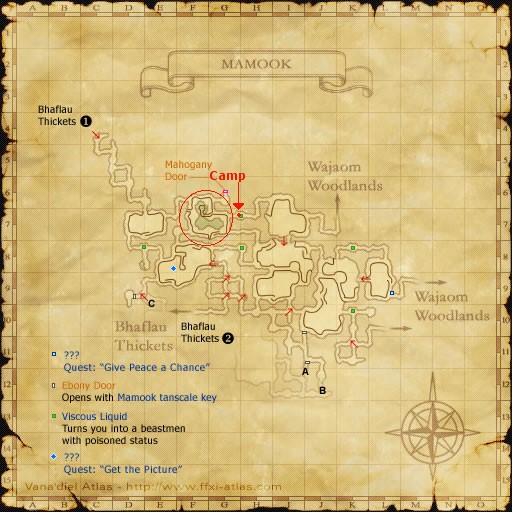 Zone into Mamook from the Wajaom Woodlands using the entrance at D-12 on the Woodlands map. Head to the small room with a vat Viscous Liquid at G/H-7, this is a safe camp. There will be sight aggro on the way to it, so take precautions. Around the pond to the west you will find eight Poroggo. Using a ranged weapon or spell pull one back to camp. There is sight and sound aggro from other monsters around the lake, so be careful. The frog may open with a long cast spell, so back away to your camp and wait for it to come to you. They have true hearing, but do not link. Once the Poroggo is at camp silencing it, or stunning -ga and AM is key. If a party member gets charmed, sleep them and the Poroggo immediatly, until the charm wears. Duration is not too long. Beware of Providence, the spells cast fast under it, and Death is a fight ender.