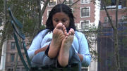 Latest clip added to the store, click my banner to read more. This was shot in early summer of 2014, right after a free Broadway concert. She was sitting among the chairs that the maintenance guys take up from around the stage when the concert is over, and I remember thinking, "please, foot gods, smile on me and don't have them ask her to get up." The foot gods answered my prayers. I love this adorable girl and her sexy soles so fucking much I seriously considered keeping it to myself forever as a private clip, but she's too wonderful not to share. Big-eyed girls totally captivate me....