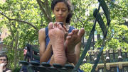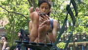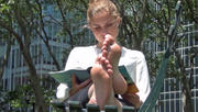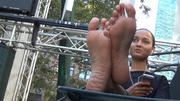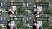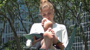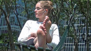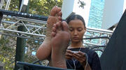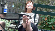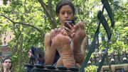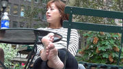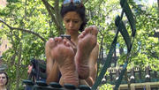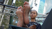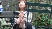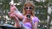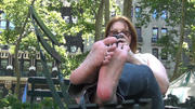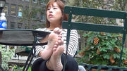These days girls are wearing cozy shoes and it's stressing me out! They are so comfortable they often leave them on even when resting in the park. I have got into the habit of taking pictures of girls who would offer amazing sole views if only they had their shoes off, and sending them to a friend to commiserate. I saw this very slender waif-like girl with a pretty face, who had her feet up but sneakers still on and took just such a pic, cursing Fortuna, and went on my way. BUT THEN, about 20 minutes later, I looked over in her direction and the shoes were off! Her pale soles were long and slender and impeccable and there was space for me to sit in front of her so I hustled over and sat down to shoot.