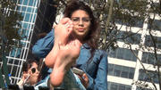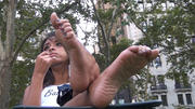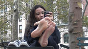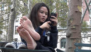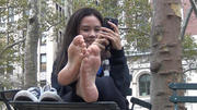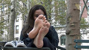I had actually shot this slender, gorgeous babe pretty early in the 2017 season. She was sitting on the lawn on a Friday night during a concert and she had her bare feet up, and they were beautiful but she looked very different, very bookish and modest. She was even reading a religious book, lol! Still her soles were gorgeous so I sat down to shoot her, but there were a million people all around and I was SO CLOSE. Too close actually, and it turned out a lot of the footage I shot was blurry because the camcorder could not cope with the proximity. I was disappointed but still loved the footage that was clear, and I also loved the funny way she reacted to my being right on top of her sensitive bare soles.