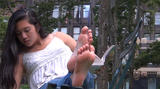 Thanks for sharing them with us. 😀Just had a religious experience. This wavy soled wonder squiggled those sexy slender soles around for 25 minutes! And I shot until my battery died. Took this iPhone pic after I put my juiceless camcorder away. As far as I know she’s still there waving those incredible bare soles at the park! ��