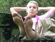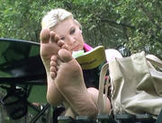 This is the latest clip, click my banner below to read more about it and get the clip. She was studying pediatrics in an otherwise empty park, weird that the only person there was one that almost seemed delivered by the gods to be a vision of perfection for me! This stunningly beautiful girl, with gorgeous long slender soles and very long toes, seemed no more than mildly entertained by my evident interest in her feet. She let me sit and shoot a half hour, God bless her, but I've whittled that down to about 13 minutes of awesome stuff for one clip, then further whittled that down (and man was THAT difficult) to about seven minutes. Shot this four years ago and she never fails to take my breath away.