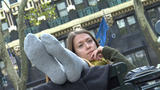 Amazing experience this spring on the lawn! And it's about time, this year has started out really slow. I got a few clips but I would not add them to my store, because the women are not pretty enough. Not the problem here though! This absolutely beautiful girl, about five eleven, was on the lawn with her much shorter friend who looks so much like Kirsten Dunst, for a second I thought it was Kirsten Dunst. She had her big, very fashionable track shoes off and her very large, slender bare feet up. She was not moving her feet, and wasn't really talking with her friend. My god what a view -- she has an amazing body, her legs go on forever, her feet are really big and their soles look incredibly soft and sensitive, and she is as pretty as a movie star! I really, really did not want to blow this, so I sat down, very nonchalant, and slipped my camcorder out -- but nope, the Kirsten Dunst girl saw it INSTANTLY and I heard and saw her point right at it to the tall girl, and I wondered what was going to happen. I could either sit there and not shoot, the camera on the ground between my legs, or I could risk it and slide the camcorder up onto my lap and open the viewfinder. I has a short internal struggle but the dry spell, and the sheer stunning beauty of her face and soles, drove me to reach down, get the camcorder, and open the viewfinder.