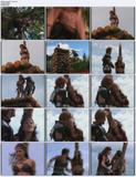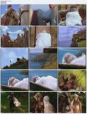 At 41 minutes in, Kavelaars finds Wit in a barn, chained to a post and cleave-gagged. Her ankles are also chained. At 1:02, Kavelaars returns un ungags Wit to hear her story, She then re-gags her and promises to come back. At A;15, Kavelaars herself is chained up and gagged. The chains wrap around her body above and below the breasts, but the gag doesn't last long as she awaits rescue.....