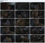 Crystal Bernard plays a writer who unknowingly takes credit for the journal of a psychopath. At about 60 minutes in she is chloroformed and carried off (she's wearing a black dress and heels). She comes to and tries to escape but is caught. Her left wrist is taped to the arm of an office chair. Her right wrist remains free so she can write a suicide note. Her ankles are also taped together and taped to the center support of the chair. The chair with Crystal still in it tips over during a struggle.