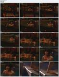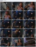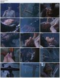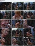At 65’ mark, gal walks into the basement and finds Nicky (Griffith) strapped down to a table that has adjustable positions for each arm. She is tied down with barb and razor wire. Several tubes from a bucket above her head are placed in her mouth. Some dialysis machines are operating around her, that they are actually pumping blood into her body instead of removing the water from her system. The gal tries to remove the hoses, but the damsel is ‘filling up’ to fast and actually explodes. [Nothing was shown on how the damsel was captured].