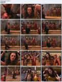 Mirrah is seen at the very end of the movie, at about the 1: 27:00 mark,, bent over a table & strapped down to it & very tightly cleave gagged. The scene lasts about 30 seconds or so, but some nice close ups.