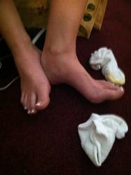 Dude, you are SO lucky! Those feet of her's are very pretty. I really like all the pics you got so far. I'm not one to ask for requests...much...., but you....know...if you put up some nylon and shoe/sock removal...I don't think I'd complain. >.>