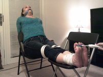OddJob0226 - Yeah, she's been a ler in some sets. I thought you meant that she did some tickling in set 27. And it's all good. Yeah, I'm a big fan of sensory deprivation, especially in a hogtie. I tried it with a girl sitting up and it just wasn't the same (set 25). On my deviantart page (link in signature) I have more sensory deprivation pics. I made a group for sensory deprivation on there as well.