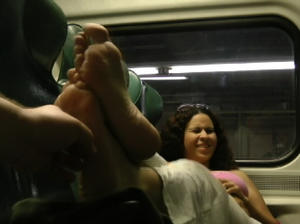 Natalie's huge soft soles on the train! PUBLIC sole tickling and exhibitionism!!!