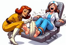 Looks like our girl April was trying to get away and got caught. The doc caught April by her toes and now will make April's toes suffer the consequences.