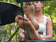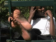 Great sole shots.Latest clip, click my banner to get it. This student teacher was grading papers in the park as she resting her feet out of her clunky heeled black leather shoes (size 8, a large size for a girl who was only about five feet tall). Excellent soles and she sat there for almost fifteen minutes, doing a little flexing of her shapely feet.