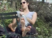 Latest clip, click my banner to go to the store. This girl was on the lawn but had her chic combat boots on, long and slender like the rest of her. I sat next to her more out of sheer magnetism than anything else. I overheard her talking in great detail about runway modeling at a major event, not a surprise to me as she was BEAUTIFUL. Then she hung up, enjoyed some tunes, and slipped her chic combat boots off, revealing smooth, gorgeous size 10s. What to do then? Check my webstore to read more....