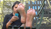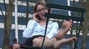 Only later when I got home and downloaded the shoot, and analysed it by enhancing brightness on certain parts, did I see that she would periodically look for some time straight into the camera lens (see the third cap for an example), then go back to her evaluation of the property. It's definitely exciting for me to even think about a quality woman like this one sitting there as I filmed the soles of her bare feet and continuing to rub them together playfully while peeking to see if I was still shooting -- MAN that's a rush.
