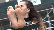 I shot an almost impossibly gorgeous Russian girl on the lawn in the late summer, and I immediately posted it on my store because I could not believe my good fortune. Not only was she across-the-board-STUNNING, including her scrumptious feet, but she was also wry and extremely playful. Some women think it's so hilarious that the soles of their feet are being filmed ("of all things!" you can almost hear them thinking) that they seem like they are trying very hard not to explode with laughter. I guess they think that if they actually laugh, they will scare me off, but they don't know me very well! As long as the soles are out I will keep shooting even if their husbands are standing over me beating me on the skull with a monkey wrench. A man has to have his priorities.