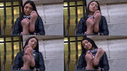 After shooting her on the lawn, I saw her in mid October striding south on Seventh Avenue, and that in itself was sort of a thrill all its own. She is REALLY tall -- I'm guessing six foot tall, because she was clearly taller than me, because she had these huge clunky sandals on with the giant platform soles. She looked SO BEAUTIFUL! Her legs are incredibly long. When I see a girl I filmed again just walking along on the street I always consider it a huge gift, but little did I know that I'd see her again in late October ... and THIS would happen.