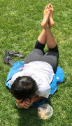 Well, all these years later, she appeared on the lawn again. She was in the pose but her soles were angled too much toward the sky for video, sadly, so instead I just stood over her and took photos of her very long soles and toes with my phone, lol.