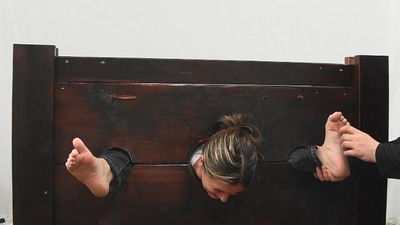 Super-ticklish glamour babe Holly Mcguire returns, and this time she encounters the very saucy, sexy, mature Red! Dressed in a naughty secretary outfit with sheer black stockings, Holly gets tied to the chair with her feet in the stocks while Red has some fun tickling her out of her mind! Red teases and tickles Holly while she shrieks and struggles to get away. Holly's feet get a lot of tickling from Red's long nails and from the hairbrushes and her upperbody is not neglected either! When we tickle Holly together she completely goes to pieces. Her nylons get ripped and her bare feet are tickled with fingers brushes and of course some baby oil! Poor Holly is exhausting and begging by the end. When the tables are turned, Holly wastes no time in tickling Red's sensitive feet before tearing her nylons to tickle her bare feet too! Red gets tickled all over by Holly but when we both tickle her bare feet with the hairbrushes, Holly knows she's had her revenge! 720x408 pixels, 21 mins, 22 seconds *N.b. Price reduced by $3 on this very long clip!