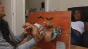 Gorgeous Angelina returned to UK Tickling for another shoot last week - with a serious tan! 🙂 Tiny cutie Ayla came along later and arrived just in time to give Angelina's bare feet a serious workout..Angelina describes Ayla's fingernails as 'like daggers' lol! This little bare foot scene is out now..