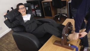 Another belated preview, this one features a first tickle session for gorgeous newcomer Tanya! Tanya looks awesome in a hot business suit with sheer nylons as she tries the stocks for the first time. Tanya was a little nervous beforehand as she'd told me how ticklish she is - and she really is! 🙂