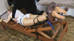 One of the hottest and most ticklish models around, Rachelle gets a mean foot tickling in this one with a little crazy upperbody tickling thrown in too! Amazing of her perfect ass in this position too, although Rachelle said this was the worst position for her. This one's coming to the store next!