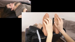 This one was a custom and a great fun challenge to shoot! Izzy has to try not to laugh for one minute while Sophia uses her evil nails on her feet. Of course, she fails it and her challenge is a merciless all-over tickling...Sophia's a great tickler! 😉