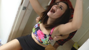 A great shoot with sexy adult star Maisie today. She was so excited about shooting but so ticklish she nearly pee'd herself about three times! She has a great body, amazing feet and is crazily ticklish everywhere, but the armpit tickling was more than she could handle at times (hence the emergency bathroom breaks!)