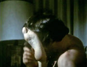Here's Linda Evans, handsome blonde teevee actress who replaced Ursula Andress in John Derek's life only to be replaced in turn by Bo Derek, known to most as the good female on Dynasty, but known to us as the tall blonde who gets her big feet slobbered over by Joe Don Baker in the 70s B movie Mitchell.